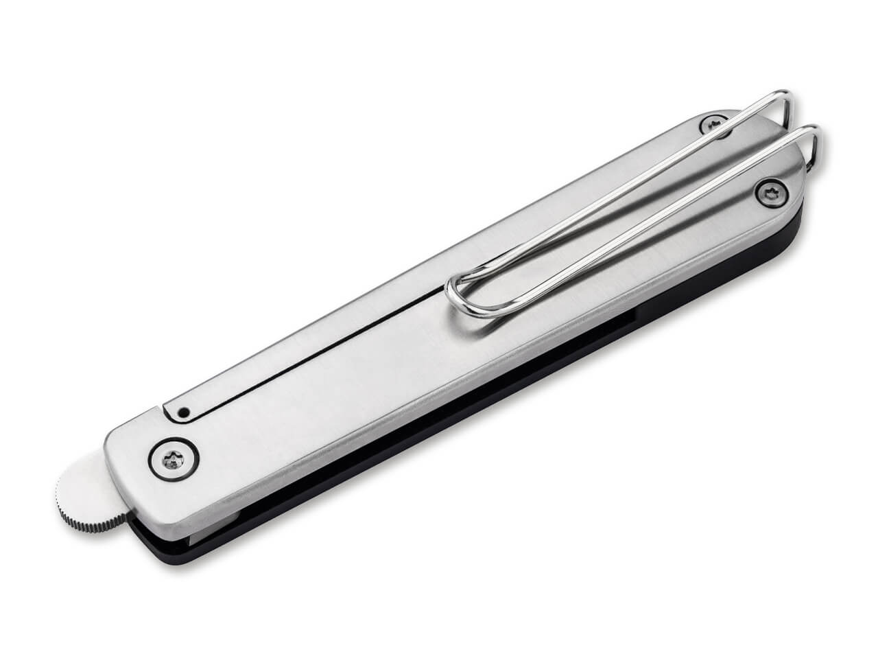 'Haute cut-ure aus der Modehauptstadt: Der Pariser Produktdesigner Alban Le Henry präsentiert das Boker Plus Friday, ein Gentleman-Messer, das jeden Tag wie ein Freitag wirken lässt. Kühn und stilvoll mit souveräner Selbstsicherheit sticht es auf dem EDC-Laufsteg hervor. Eine auf Kugellagern gelagerte Sheepfoot-Klinge aus Nitro-V sorgt für elegantes, leichtes Schneiden, kombiniert mit einem fein austarierten Griff aus G10 und Edelstahl. Flipper und Framelock verleihen mühelose, gentlemanhafte Lässigkeit, während ein Drahtclip dezentes Deep-Carry ermöglicht. Wird mit einem hochwertigen Nylonetui geliefert — Boker Plus Friday: stets stilvoll.'