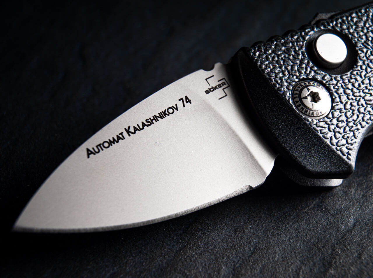 'A small knife doesn’t have to be delicate. The Boker Plus AKS-74 Stubby, sitting between standard and mini sizes, surprisingly bridges the gap with great success. Its ergonomics provide excellent control for larger hands or demanding use, making it an ideal choice for anyone who wants power in a compact package. Its compact dimensions allow a version with a minimally shortened blade that complies with current Swiss weapons law, which permits switchblades with an overall length up to 12 cm and a maximum blade length of 5 cm. The EDP‑coated black handle evokes the bayonet of the famous assault rifle, and the raised panels ensure a secure grip in any situation. It also includes a practical tip-up/right pocket clip.'