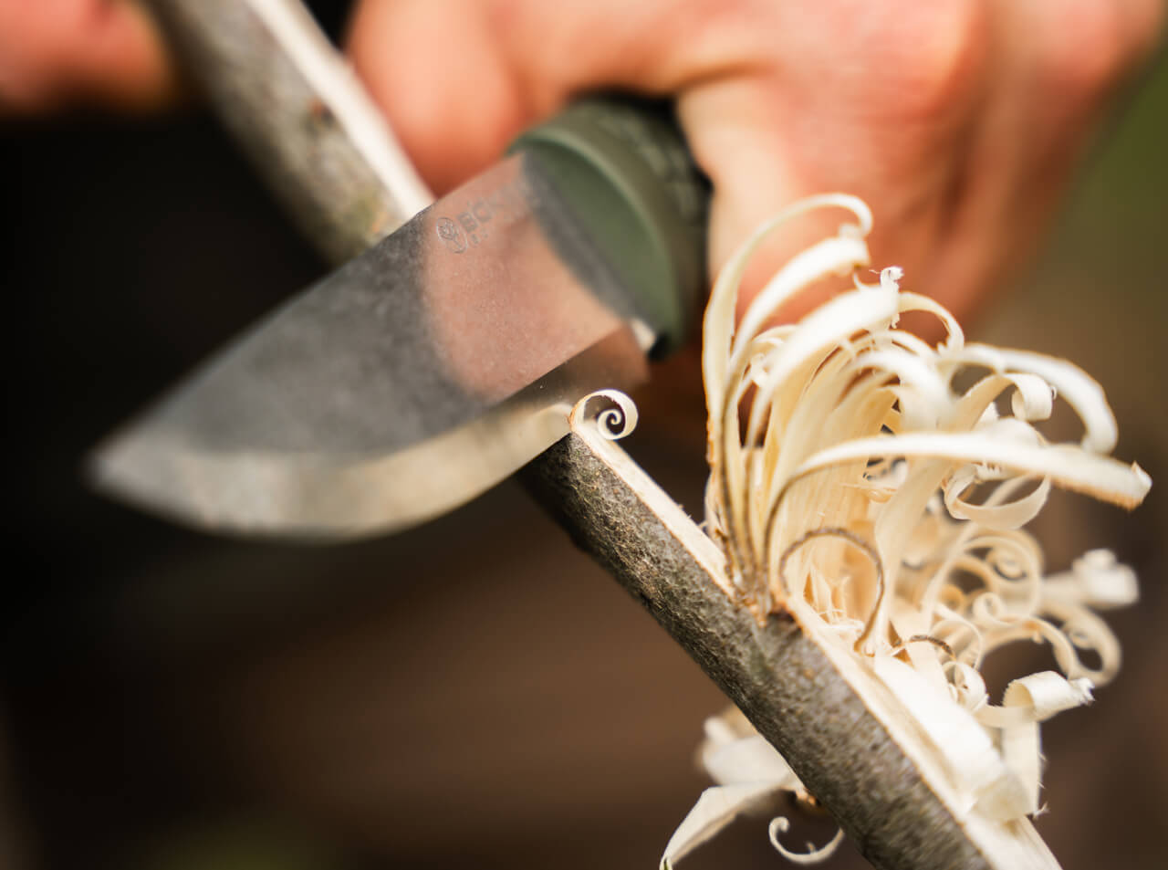 'Does it get any greener than this? Not at all. The Boker Bronco Mini CPM 3V Green Scandi pairs compact, balanced design with an eager appetite for adventure. A scaled-down version of the renowned Boker Bronco, this striking bushcraft knife excels from dewy-morning tasks to campfire chores. Its drop-point blade features a deep-set Scandi grind and is forged from powder‑metallurgical CPM-3V steel, prized for exceptional fracture resistance. Built for cutting, carving and even chopping, the full tang extends slightly beyond the handle to absorb heavy strikes against wood. A short section of the spine forms two sharp 90-degree edges for striking sparks with a fire starter (sold separately). The forest-green thermoplastic elastomer (TPE) handle fully encases the tang and offers a non-slip texture; TPE is durable, elastic, grippy and has low thermal conductivity for confident handling in any weather. The Bronco Mini is stored in a custom-fit Kydex sheath with a clip — a green tool made for the green outdoors, balancing sharpness, strength and character. Handmade in the Boker Manufactory in Solingen.'