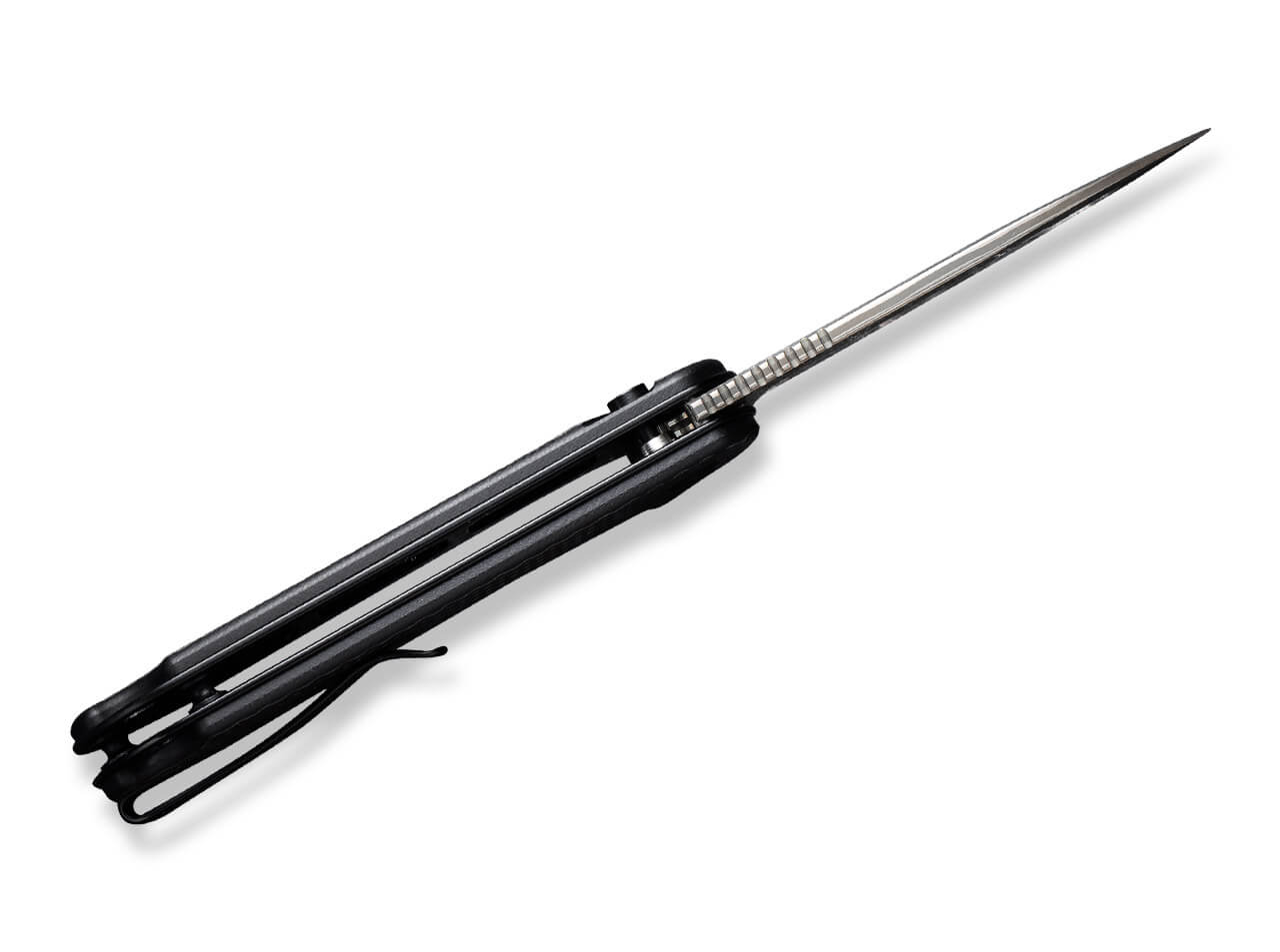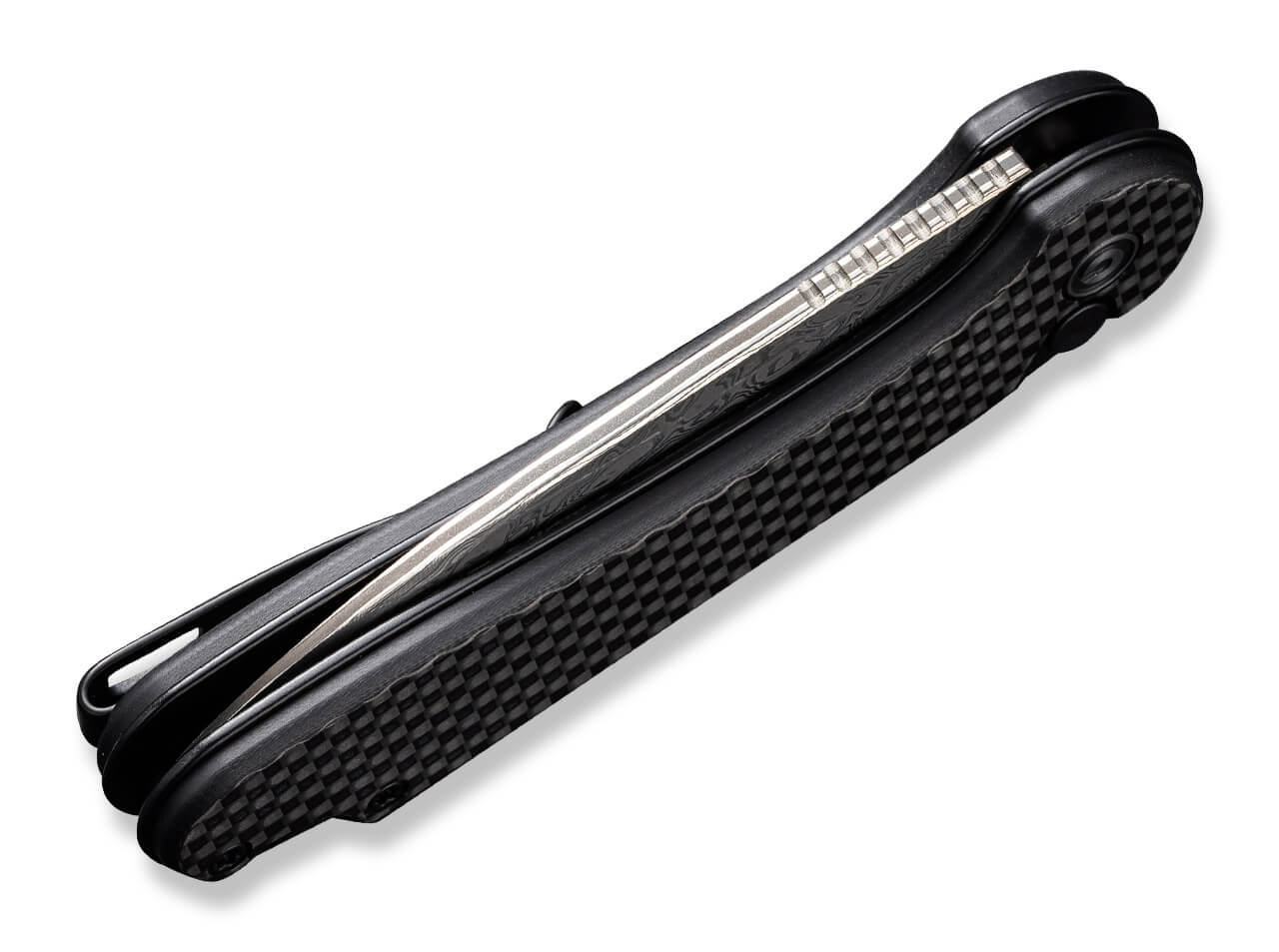 'The Button Lock version of CIVIVI’s popular Elementum has carbon-fiber handle scales and a fine Damascus steel blade. Its robust appearance, reliable construction, and excellent value make it a great choice for everyday use. The blade opens manually and easily with a push button and is secured and released by the button lock. Includes a lanyard hole and a deep-carry, tip-up right-side pocket clip.'
