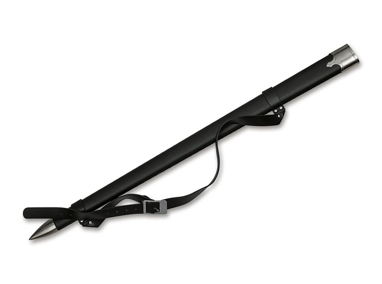 'The massive Magnum Ferrum is an impressive two-handed sword intended primarily for use against human opponents. The medieval-style blade is made from high-quality stainless steel, and the handle is wrapped in fine cord. An ornately decorated crossguard offers protection against attacks, while the substantial pommel can also be used effectively. A precisely fitted scabbard with an adjustable strap allows comfortable carry on the back. Decorative/collector’s item — not suitable for functional use. This item is shipped as bulk goods.'