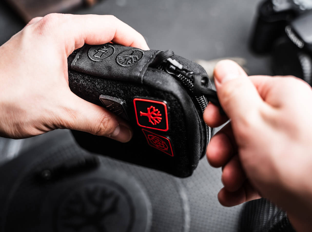 'Extra sharp, extra crispy, extra EDC! A double hamburger in spirit—zero calories, minimal garnish, but a satisfying bite. Designed with the Knife Lounge of Altonaer Silberwerkstadt in Hamburg, the distinctive Hamburger Pouch echoes the shape of the classic fast-food icon and showcases the practical sensibility of northern Germany. Ideal for an organized everyday carry, this compact pouch safely stores pocket knives, flashlights, multitools and similar gear. Built from hard-wearing, flexible Cordura 500D that resists abrasion and tearing, it offers reliable protection for carrying in a backpack or jacket. The pouch’s flap features a one-way zipper that can be secured with a separately sold travel lock, keeping curious hands and eyes at bay and making it easier to justify carrying permitted pocket knives in public by reducing accessibility. Inside, adjustable two-way straps let you arrange items to avoid rubbing and scratching, while an external zip pocket holds a lock and key. Large Velcro panels on the exterior allow for extensive patch customization, and a removable internal protective flap provides extra space for patches if desired. The Knife Lounge and Boker logos are discreetly embroidered in black on top. Hanseatic, Bergisch, practical.'