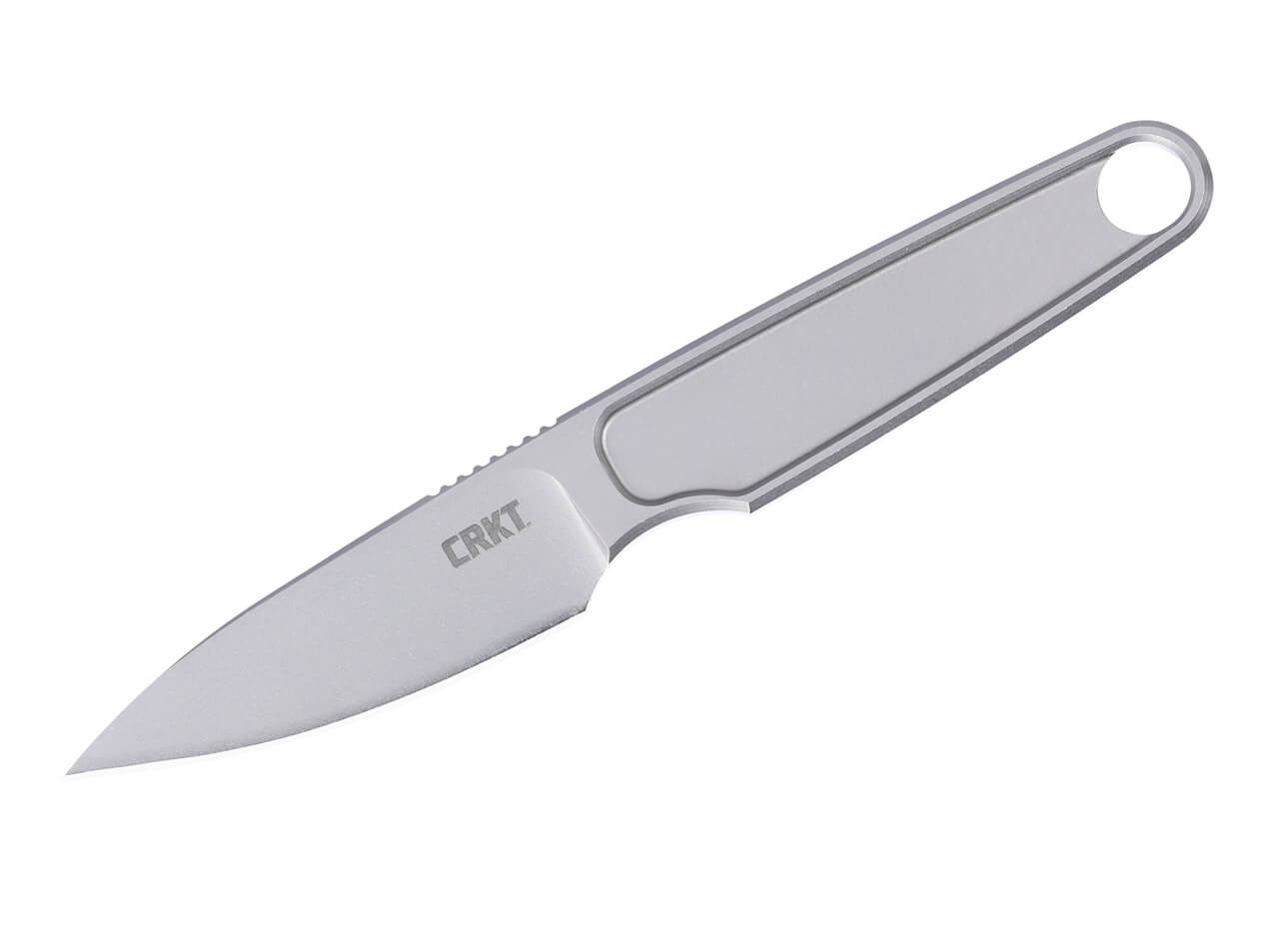 'The ultra-compact HangTi is a fixed-blade neck knife machined from a single piece of bead-blasted titanium, perfect for light cutting tasks. Its versatile drop-point blade and featherweight design make it well suited for everyday cutting, while the included leather lanyard adds extra purchase on the handle. The HangTi comes with a durable Kydex sheath with a lanyard and can be worn around the neck, kept in a pocket, or attached to a backpack.'