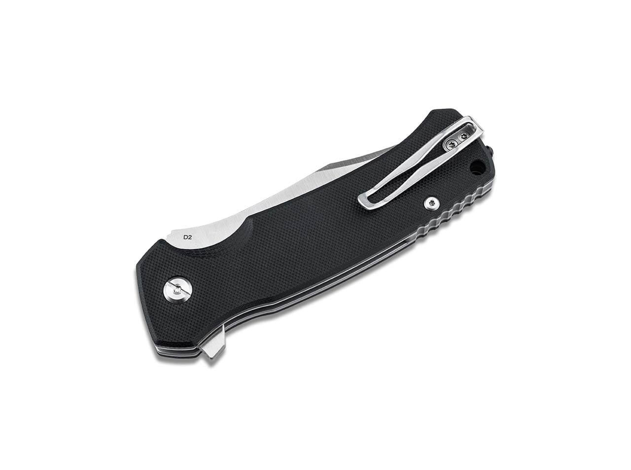 'Unpretentious yet meticulously crafted, the Boker Plus M.E.R.K.1 by Vaeringi Design delivers powerful, understated performance with precise control and a noticeable forward balance. This tactical folding knife sports a robust D2 clip-point blade with a satin finish and decorative ricasso for excellent cutting performance across tasks. Lightweight, textured black G10 scales provide a secure grip even when wet, while the ergonomic handle feels comfortable in hand. A flipper opener and a strong liner lock ensure safe, easy deployment and use. The M.E.R.K.1 also features a convertible deep-carry tip-up clip, a lanyard hole, and a tungsten-carbide glass breaker at the butt, and it comes with a high-quality nylon storage case.'