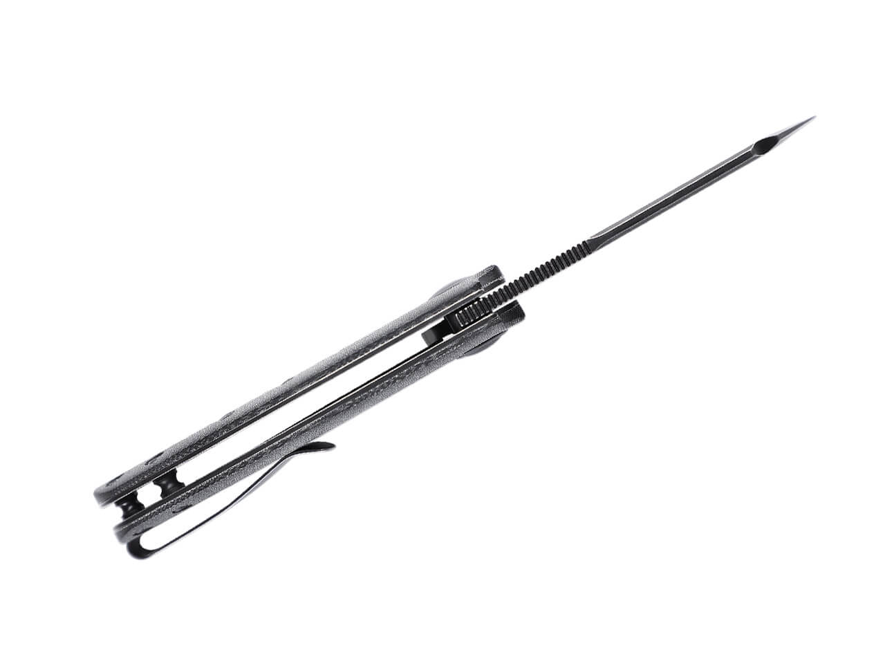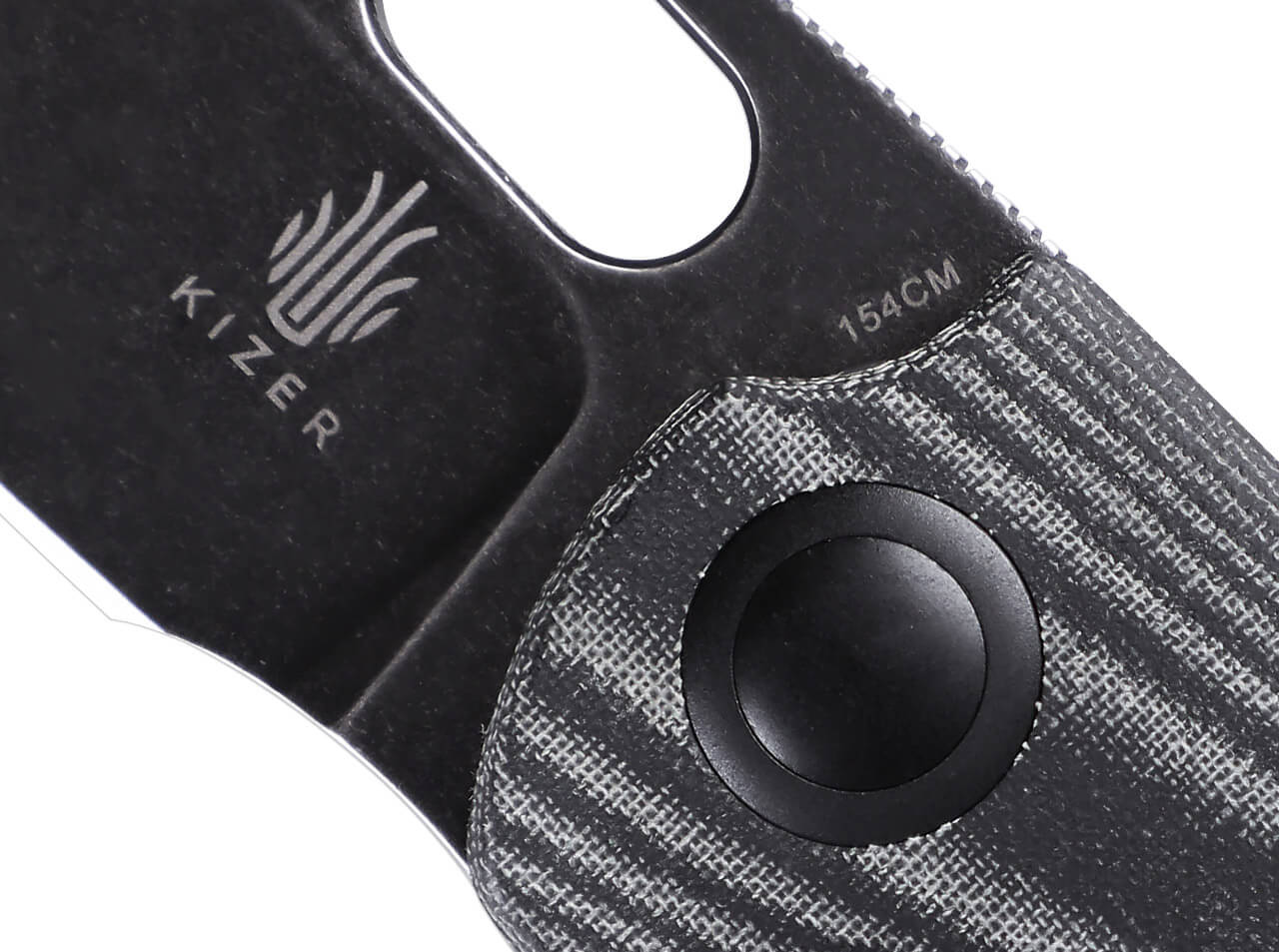 'Kizer’s Mini Sheepdog line has long been popular and continues to appeal to the EDC community with new variations. This model features a black 154CM steel blade and a gray mottled Micarta handle. It opens via a thumb hole and is secured by a slipjoint mechanism, and comes with a right-side, tip-up pocket clip.'