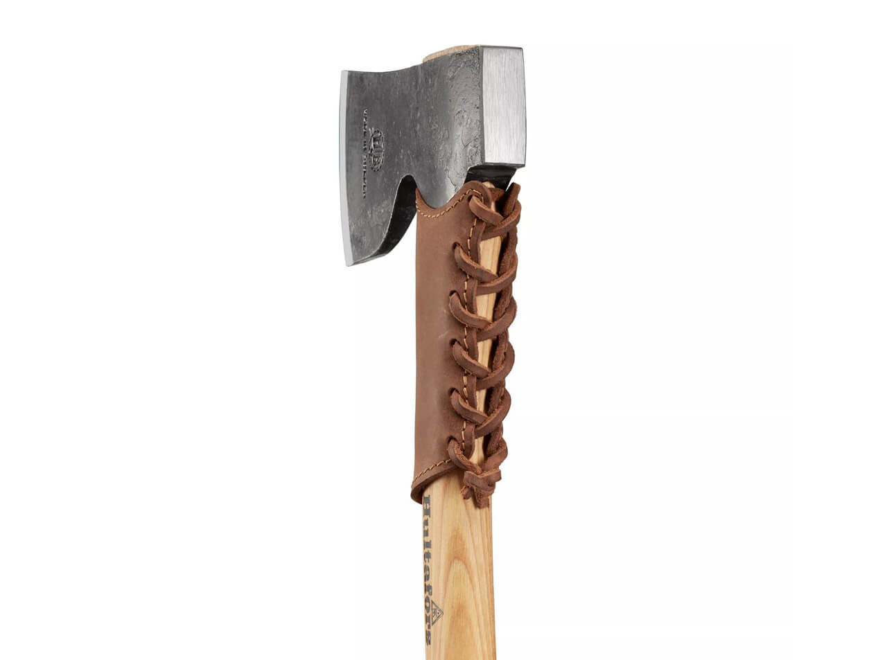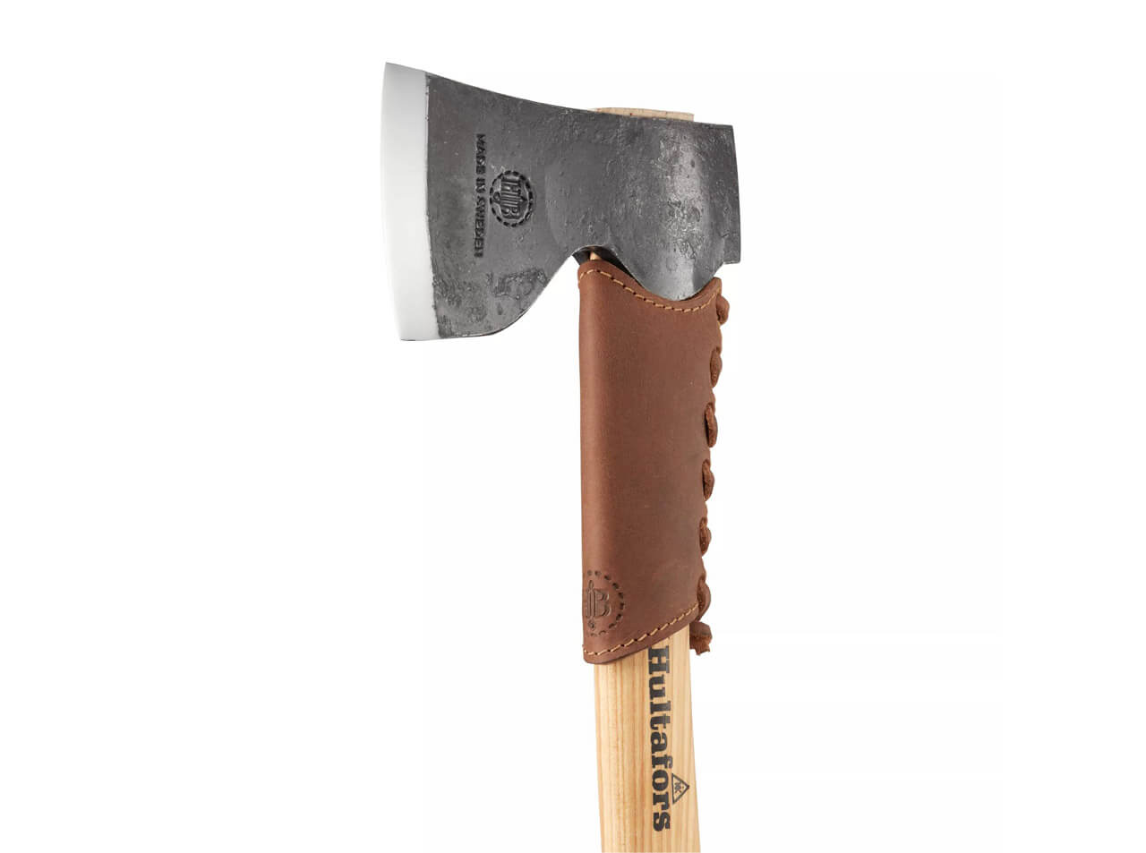 'The Overstrike Guard fastens around the handle neck, sitting directly against the axe head and tied securely to protect the handle from damage in the event of an overstrike. It is crafted from high-quality leather.'