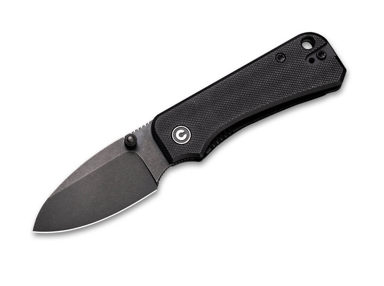 'The dependable CIVIVI Baby Banter, designed by Ben Peterson, is an all-black pocket knife built for outdoor adventures—not just for show. Its Nitro-V blade is extremely sharp and holds an edge well for everyday tasks. The knife features a non-slip G10 handle, ambidextrous thumb studs, a liner lock, a lanyard hole, and a reversible tip-up pocket clip.'