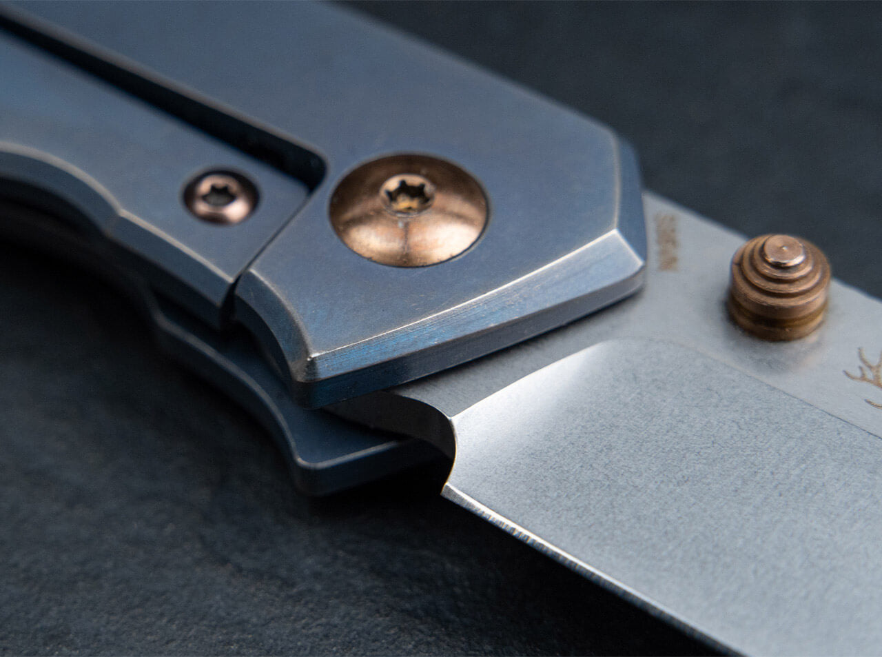'Joe Mangiafico’s contemporary, eye-catching take on the classic canoe knife features a ball-bearing drop-point blade in CPM S35VN with a stonewash finish and a blue-toned titanium handle. Bronze accents — including the pivot screw, thumb pin, and tip-up/right-side titanium pocket clip — provide tasteful contrast. While traditional canoe knives typically lack blade locks, the Boker Plus Canoe adopts a titanium framelock for a modern, performance-oriented approach. A lanyard hole and a high-quality nylon pouch complete the package.'