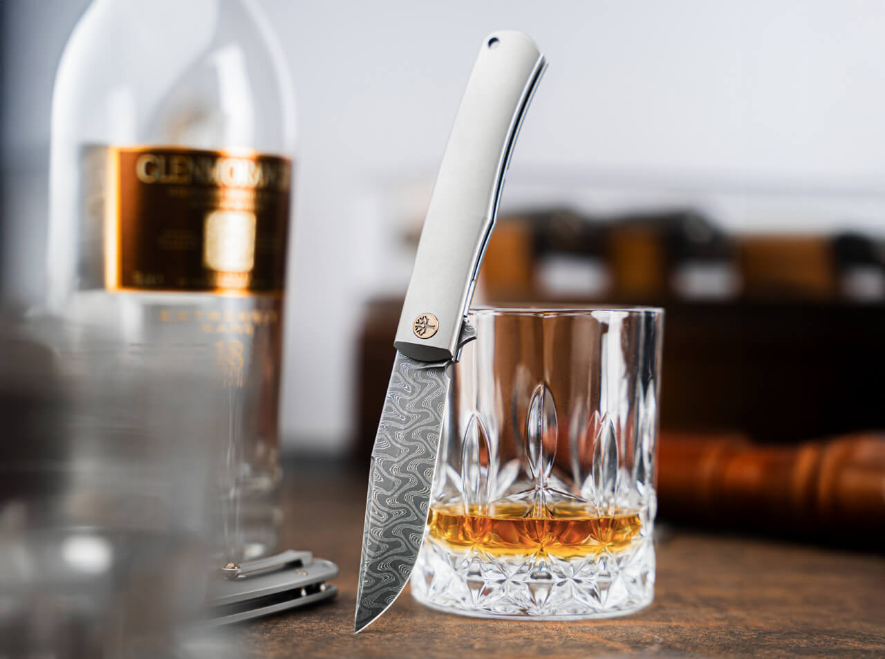 'Is it style or icon, zeitgeist or timeless, a steady heartbeat or a flash of lightning? Whatever you call it, the Boker Damast Annual Knife 2025 — strictly limited to 999 pieces worldwide — thrills collectors and enthusiasts alike. Inspired by the Boker TRPPR (pronounced "trapper"), this refined gentleman’s folder brings the spirit of the original Trapper into a modern era: pared down to essentials but fully equipped.\n\nThe blade is a silky-smooth, ball-bearing flipper made from 100-layer Damascus hand-forged in the USA by Chad Nichols in the Stainless Meadow pattern. An elegant integral framelock with overtravel stop secures the blade, while a sculpted, hand-friendly titanium handle provides a clean, contemporary contrast. Thermally colored screws, including the pivot marked with the Boker tree, and a solid-milled titanium clip (tip-up, right carry) with a ball detail supply the decorative touches. Supplied with a premium frame case and a certificate of authenticity, each knife is handmade in the Boker Manufactory in Solingen.'