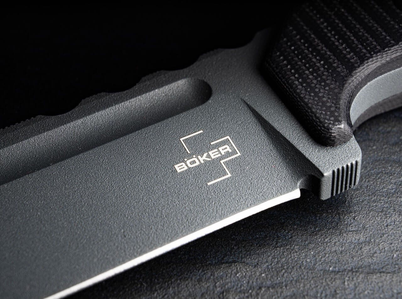'One of four legendary blacksmiths, the dwarf Dvalin forged the Brisingamen collar for the Germanic goddess of love Freya; in Norse myth the necklace carries magic, love, sorrow and suffering—Freya’s tears in heaven were said to promise rich harvests on earth, while the wrath of the All-Father Odin could drive the goddess to ignite wars among humans. Inspired by Nordic blacksmithing, Dirk Hofmeister of Midgards Messer designed the robust Boker Plus Little Dvalin Tanto: a compact fixed-blade knife with a chunky D2 steel Tanto blade, dark grey titanium coating and a pronounced hollow groove. Jimping on the spine offers a secure thumb rest for demanding cuts, and the well-shaped, partly serrated G10 handle sits firmly in the hand. You can print alternative handle scales in many shapes, colors and materials on a standard 3D printer. Includes lanyard hole, belt clip and a high-quality Kydex sheath.'