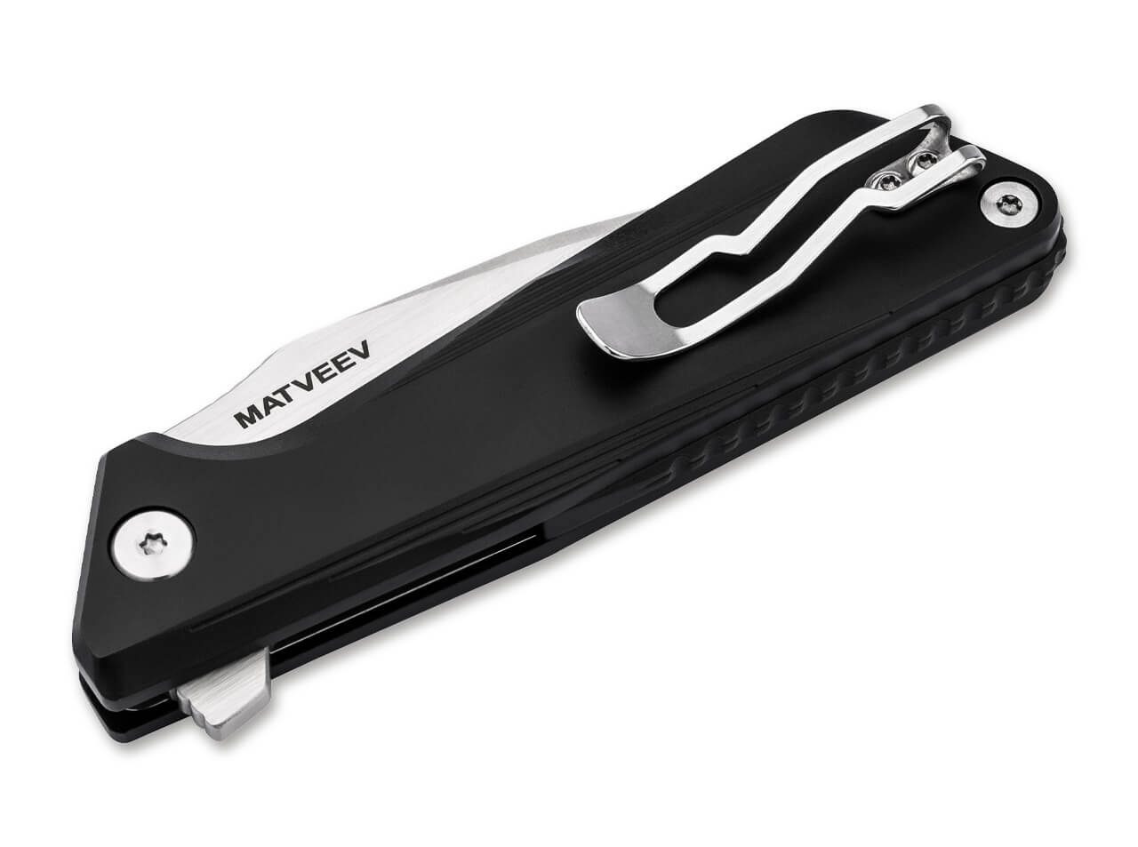 'MF.3 — ideal for everyday carry. Designed by Russian knifemaker Grigorii Matveev, the Boker Magnum MF.3 is a sturdy, versatile pocketknife that adds a refined touch to daily tasks. Thoughtful details like a discreet liner lock and horizontal jimping on the top and bottom of its ergonomic high-strength aluminium handle show that practicality can be stylish. The ball-bearing harpoon blade in 440B steel features a fine hairline finish and decorative ricasso that emphasize its modern lines, while large handle screws provide an avant-garde accent. Jimping on the blade thumb rest and the rear backspacer improve grip and safety. Supplied with a flipper for easy opening and a convertible tip-up clip for flexible carry options. Boker Magnum MF.3 — made for doers.'