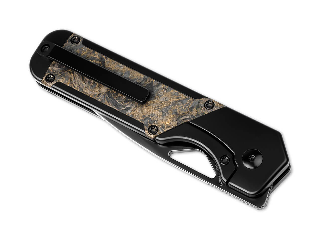 'Jonathan Style draws on the wing shape and tail tip of a hummingbird, bringing that futuristic look to the Kizer Militaw. The drop-point blade is made from powder-metallurgical CPM-S45VN steel and is deployed via a thumb hole or front flipper; minimalist lines fuse function and elegance. The titanium and thick carbon-fiber handle conceals a discreet yet reliable frame lock, and the knife includes a right-side, tip-up pocket clip.'