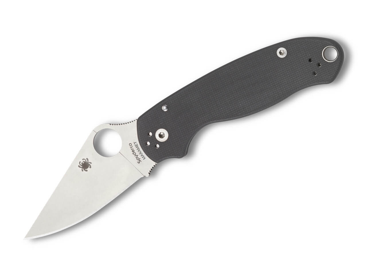 'The Para-Military has long been one of Spyderco’s most popular pocket knives. Slim and lightweight with a flat-ground blade, it serves as an ideal everyday companion for many users. The only feature that didn’t suit everyone was its size. Spyderco answered that with the Para 3, offering the same proven features in a more compact package. With an exceptionally secure compression lock, a convertible four-way clip, and the familiar ergonomics of the original, the Para 3 is a perfect addition to the lineup. This exclusive version is equipped with an extremely durable blade made from Micro-Melt Maxamet.'