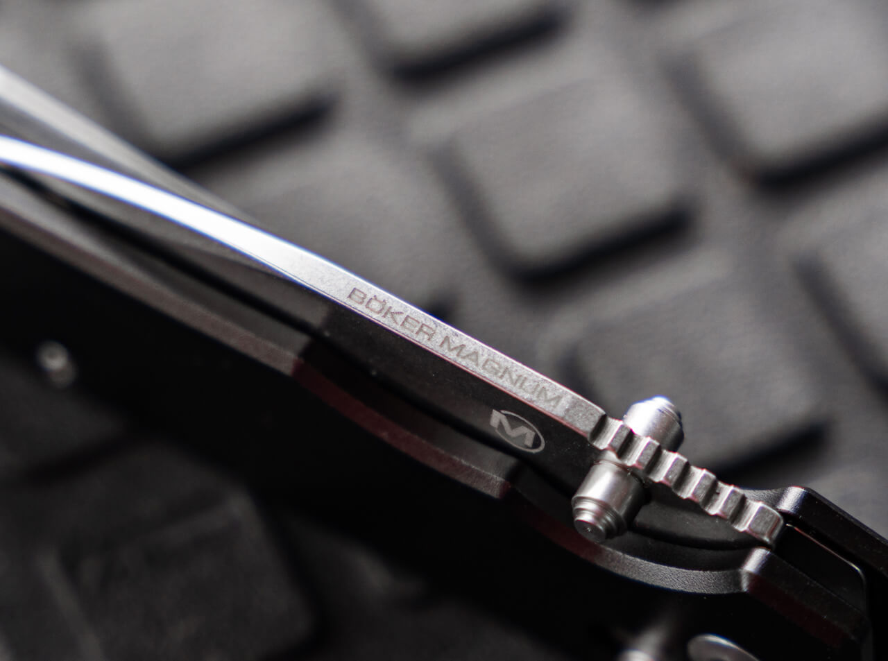 'Meet the Magnum Rockstub from Boker: a compact, rock-solid everyday pocket knife featuring a ball-bearing 440B drop-point blade with a fine stonewash finish and decorative ricasso. Built for reliability and powerful, controlled cutting, it uses a crossbar lock and offers ambidextrous thumb studs plus a slider for opening and unlocking. The elegant black aluminum handle feels great in hand, includes a lanyard hole, and a reversible deep-carry tip-up clip adds carry versatility. Please note: the current catalog lists the price as €39.95 due to a printing error; we apologize for the mistake and appreciate your understanding.'